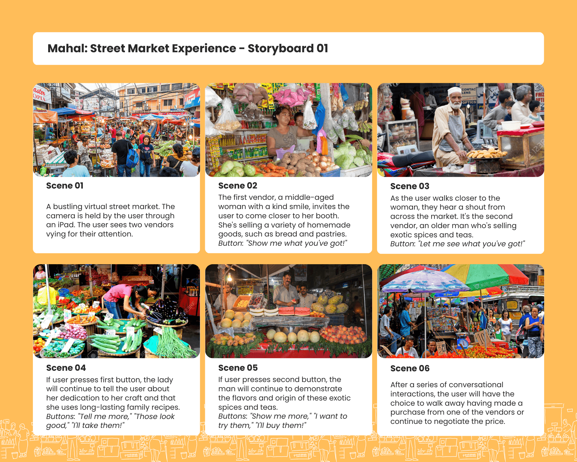 The objective of this project is to immerse users in a captivating global digital environment centered around the universal cultural phenomenon of street markets. With a focus on the shared elements found in street markets worldwide, the experience highlights the core value of the art of negotiation.
